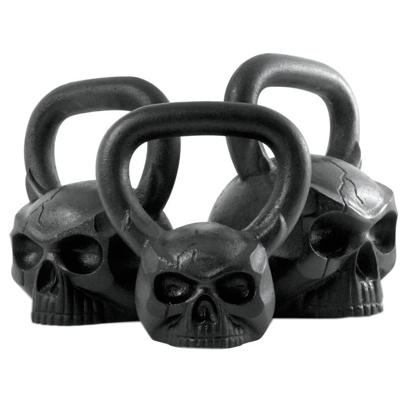 Grym kettlebell formad som dödskalle med bekvämt grepp.