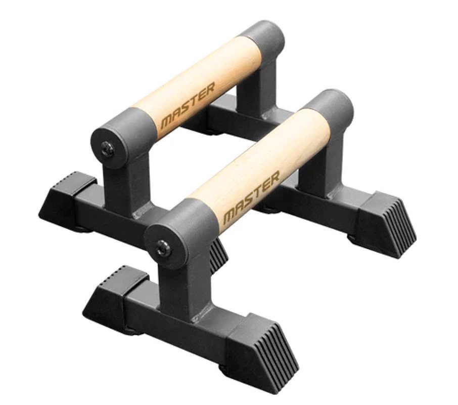 Parallettes för calisthenics och kroppsviktsträning. Perfekta för L-sits, armhävningar och handstående armhävningar (HSPU). Har en svart pulverlackerad stålbas, 38 mm trähandtag för ett säkert grepp samt gummifötter för stabilitet. Finns i tre storlekar: liten, medium och stor. Säljs i par.